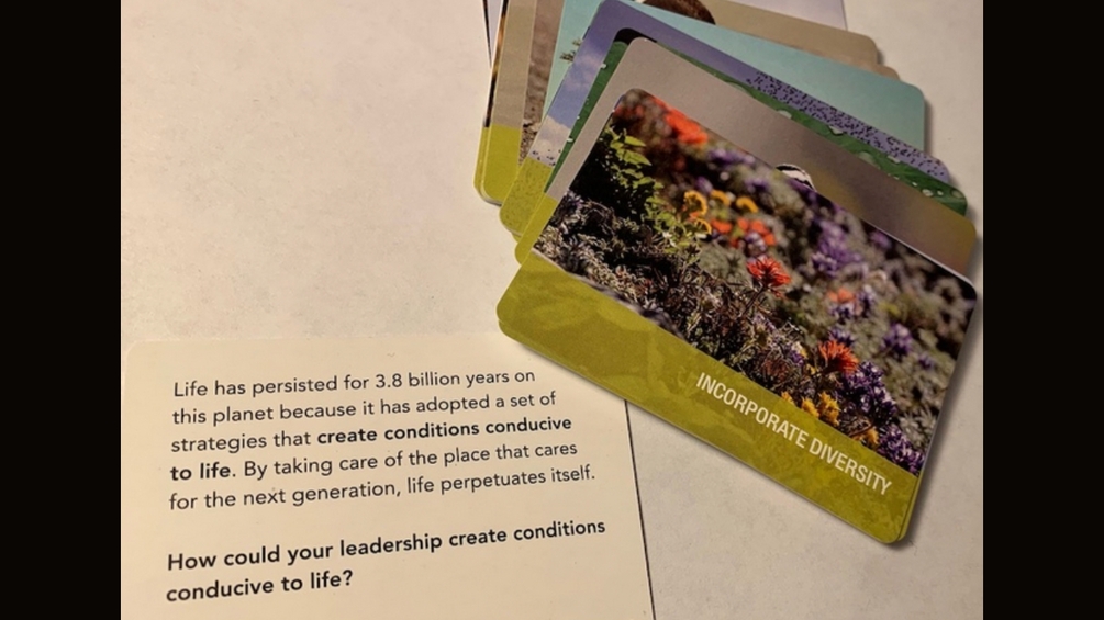 This 52-card deck offers lessons on leadership from Nature’s Champions. As leaders, we can learn from Nature, applying regenerative practices that have evolved over 3.8 billion years. These practices, or deep-design patterns across organisms, are referred to as Life’s Principles. Produced by Biomimicry for Social Innovation, in partnership with Biomimicry 3.8